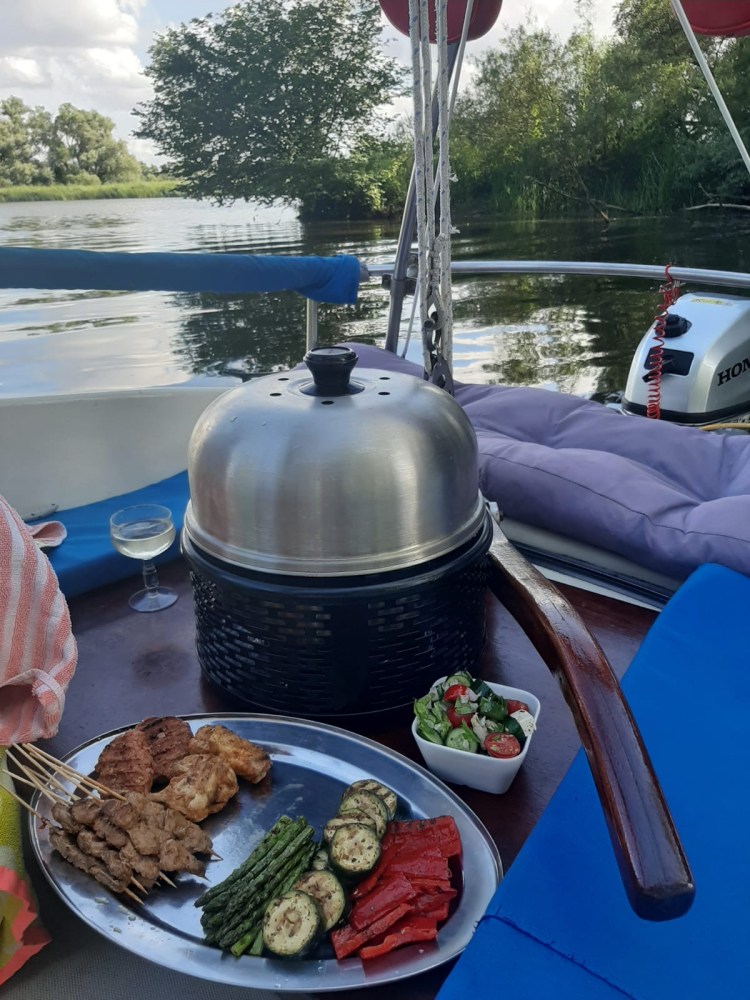 Mini BBQ compleet met diverse soorten vlees o.a. van de Schotse Hooglanders die in de Biesbosch grazen en kip, salade en gegrilde groente.