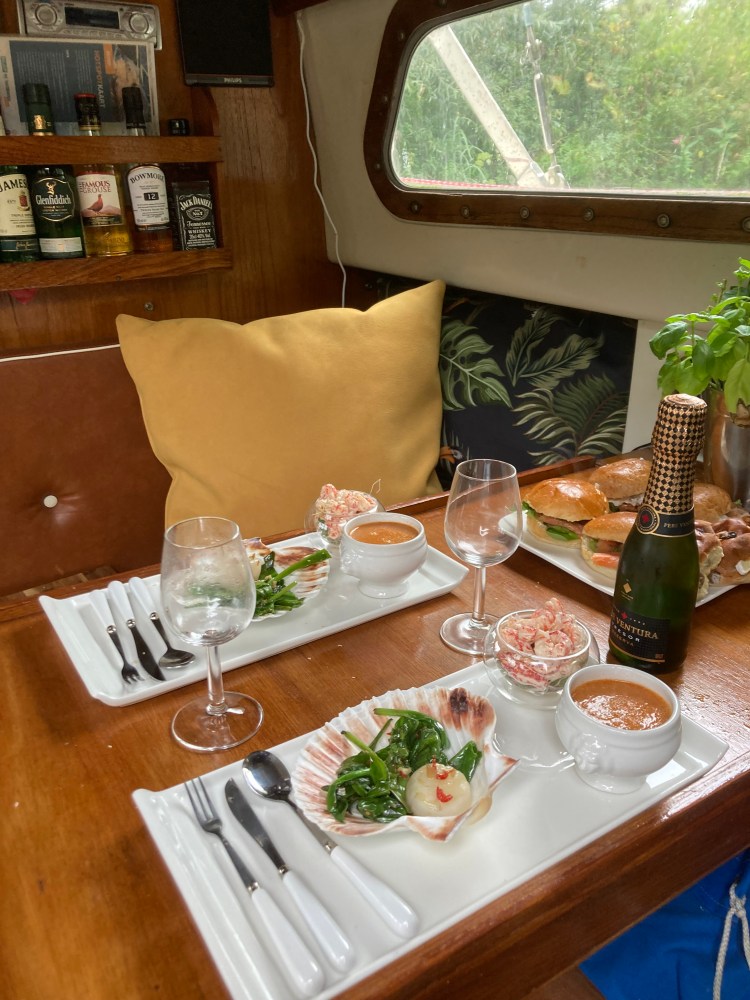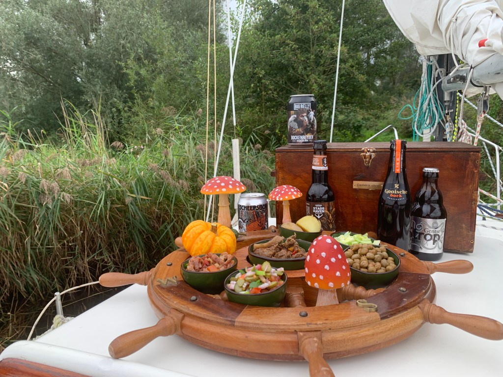 6 uur varen door de Biesbosch. Combinatie van alle gerechtjes van het menu. En onbeperkt drankjes bier, wijn en fris m.u.v. speciaal bier, cava en gedestilleerde dranken.